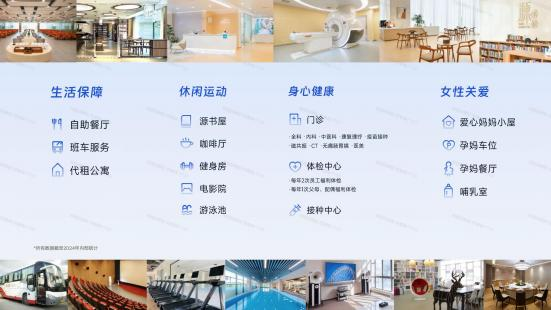 ● 健康管理:自建医疗中心,提供全科门诊、中医理疗、口腔保健、疫苗接种、母婴保健及慢性病管理等服务