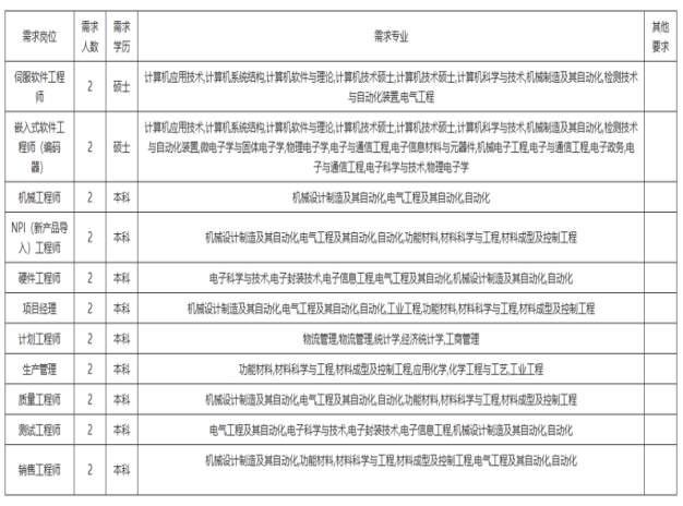 伺服软件工程师、嵌入式软件工程师(编码器)、机械工程师、硬件工程师、NPI工程师、项目经理