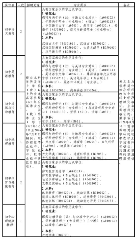 (二)初中英语教师2名,事业编制,拟聘专技十二级岗位;