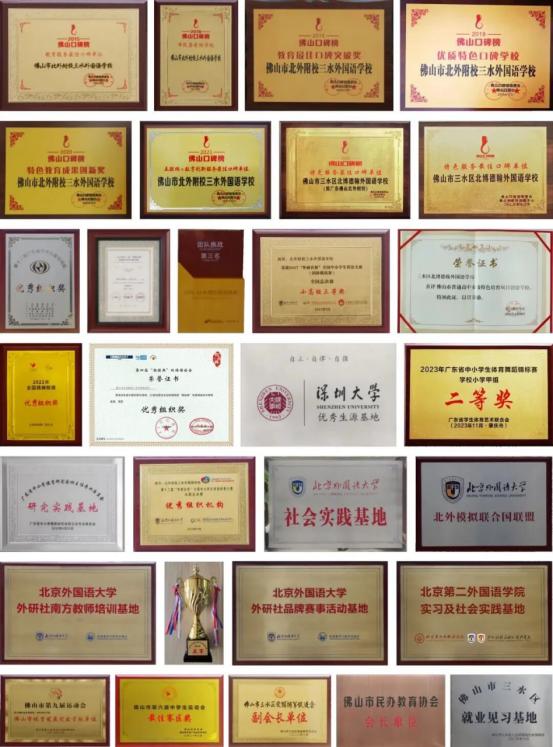 学校致力于成为粤港澳大湾区乃至辐射全国的,聚国际元素、有外语特色、能全面发展的现代化、高品质的十二年一贯制外国语学校,办学成绩受到了家长和社会的广泛赞誉。学校连续几年中考、高考成绩和国际班升学情况喜人,是同时拥有剑桥通用五级KET、PET英语及剑桥少儿英语证书考试的考点资格校(佛山仅两所);学校开办以来,被评为广东省英语特色教育先进学校、广东省最具品牌实力民办学校、广东省优秀创新民办学校暨综合实力突出国际学校等荣誉。2015年起,学校连续6年荣登佛山口碑榜,被评为市民最喜爱的学校,在2021年更是荣获佛山口碑榜·互联网+数字创新服务最佳口碑单位。