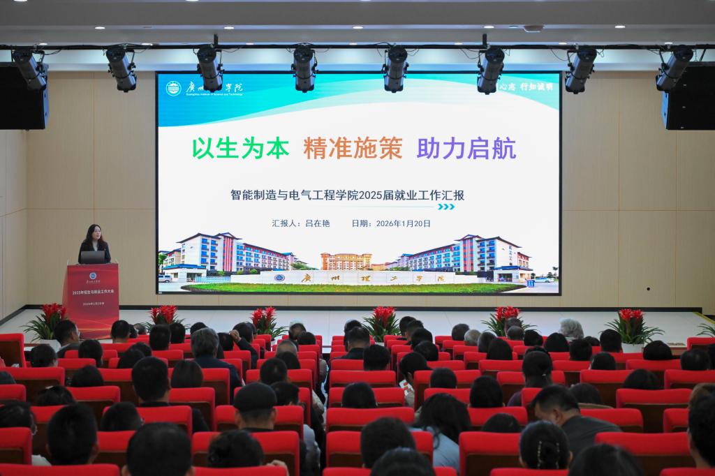 1月20日,为系统总结过去一年工作成效,科学研判当前形势,全面部署2026年招生与就业重点工作任务,学校在图书馆二楼报告厅召开2026年招生工作暨2025年招生就业总结表彰大会。董事长黄家周,校长胡社军,党委书记黄圣诚,副校长肖海、张世梅、张志红出席会议,相关部门负责人参加此次会议。会议由党委书记黄圣诚主持。