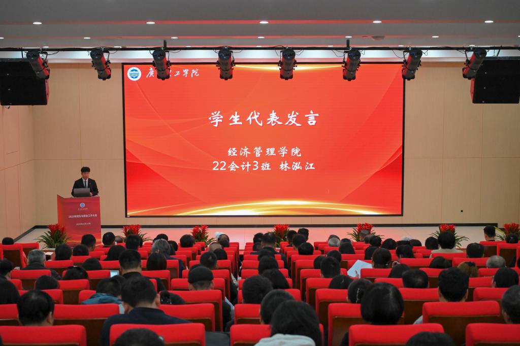 会议表彰了2025年招生与就业工作中表现突出的先进单位和先进个人。就业工作先进单位代表吕在艳、就业优秀个人代表林嘉颖、优秀班导师代表林慧、招生优秀代表李文权博士、学生代表林泓江依次发言并分享经验心得。