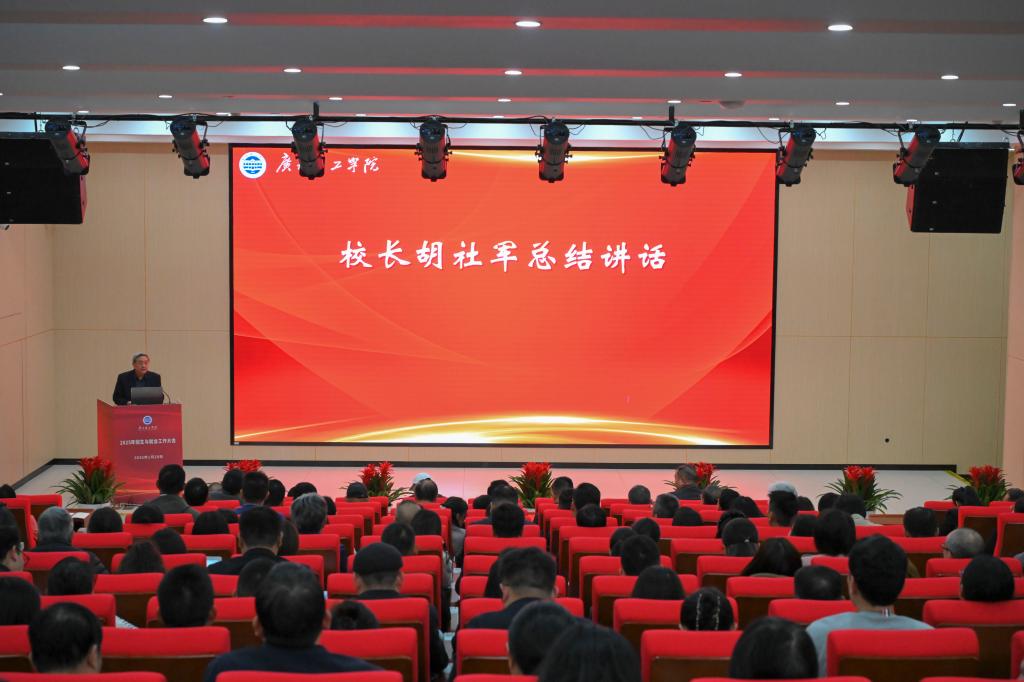 胡社军校长代表学校向受到表彰的招生就业先进集体和优秀个人表示热烈祝贺,向积极参与招生就业工作的全体教职工、关心支持学校发展的同学、校友、家长及社会各界朋友致以衷心感谢和崇高敬意。他强调,2026年是“十五五”开局之年,更是学校迎接本科教学工作合格评估和硕士学位授予立项单位建设验收的关键之年,招生就业工作面临更大挑战、肩负更重使命。