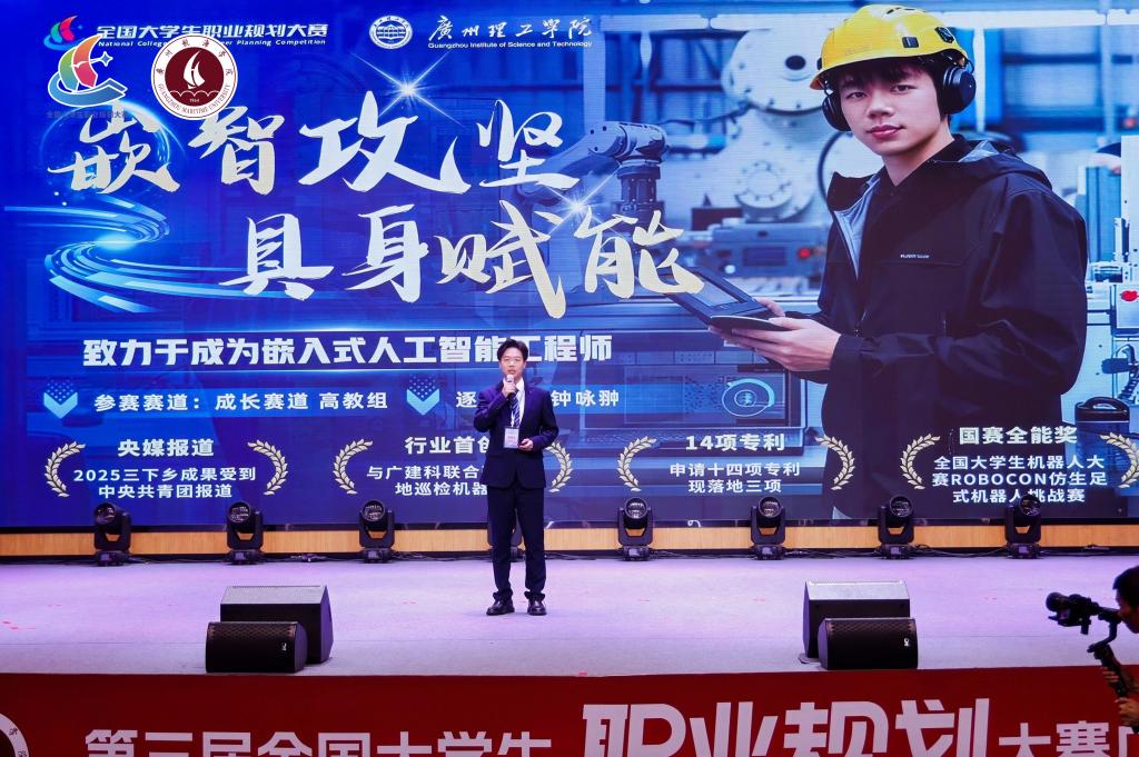 决赛现场,我校参赛学子展现出鲜明的专业特色与精准的职业规划能力;成长赛道聚焦学业与职业的衔接成长,通过详实的实践案例与清晰的能力提升路径,展现了青年学子对未来发展的深度思考。就业赛道选手则紧扣行业需求与岗位适配度,将专业知识与职业目标深度融合,其务实可行的职业执行计划与出色的临场应变能力获得评委团高度认可。最终,我校成长赛道选手钟咏翀荣获金奖,戴浩圳以及就业赛道胡国豪、林润鑫三名选手荣得银奖。获奖项目涵盖人工智能、建筑工程等多个领域,充分体现了我校应用型人才培养与区域产业发展的高度契合。