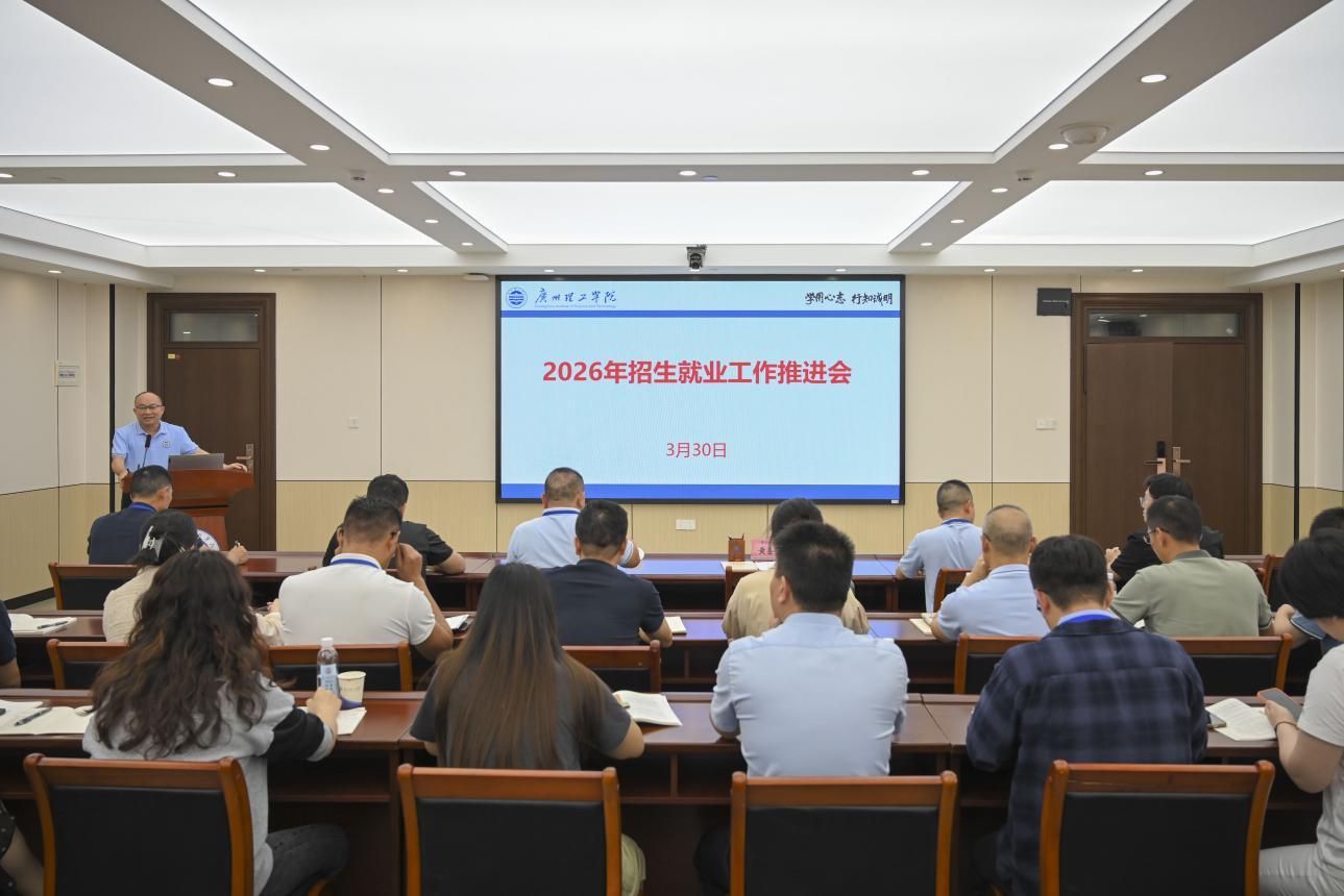 为统筹推进2026年招生与就业工作,凝聚全校合力,确保招生提质、就业增效,3月30日,在行政楼815会议室召开2026年招生就业工作推进会。学校党委书记黄圣诚、副校长张志红、校长助理、招生与就业处处长唐成龙、党委工作部、学生管理部、招生与就业处中层干部,各二级学院党总支书记、副书记参加了会议,会议由党委书记黄圣诚主持。